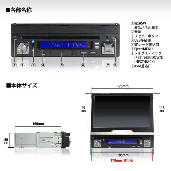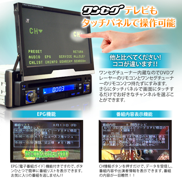 1DIN7インチワンセグ内蔵タッチパネル式DVDプレイヤー(1DINSE706A)