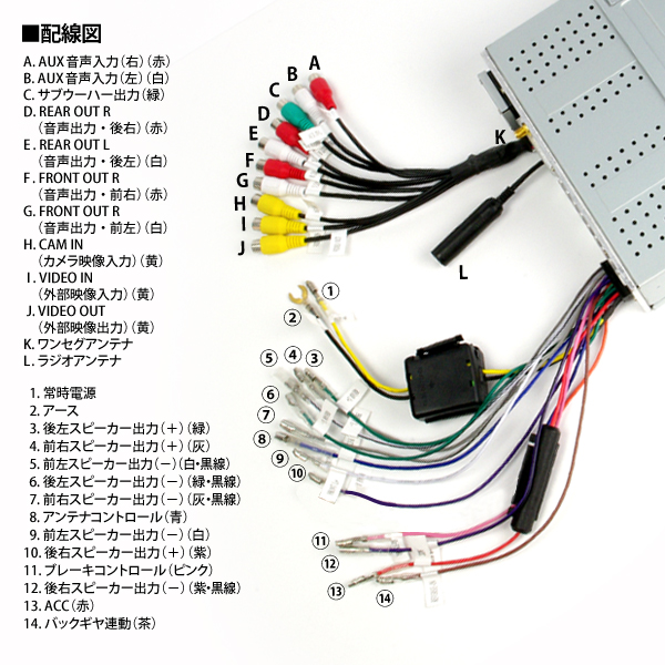 - ワンセグチューナー、ゲーム機の接続も可能です。音声もステレオ入力対応!!(映像入力2系統搭載:外部映像1系統、カメラ入力1系統)