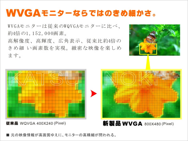 - 7インチWVGA液晶パネル採用
