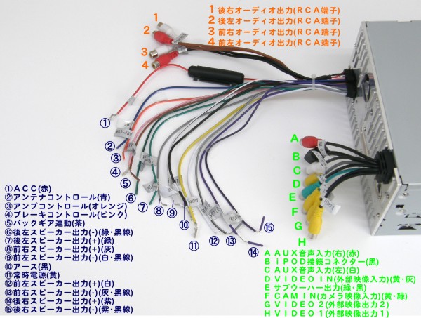 - リモコン1個、取付金具2個、USB接続ケーブル、ipod用接続ケーブル、接続用コネクタ、日本語配線接続説明書
