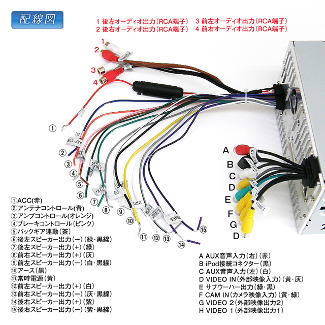 - リモコン1個、取付金具2個、USB接続ケーブル、ipod用接続ケーブル、接続用コネクタ、日本語配線接続説明書