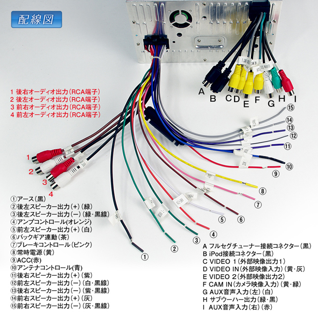 - FL・FR・RR・RL/RCA スピーカ (アンプ)出力 4×45W