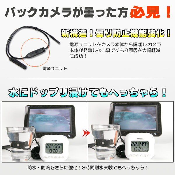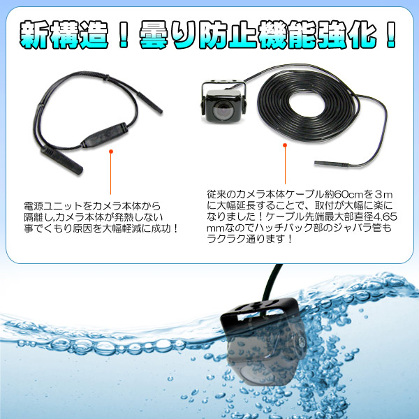 - 従来のバックカメラより防水・防滴を強化しました。※