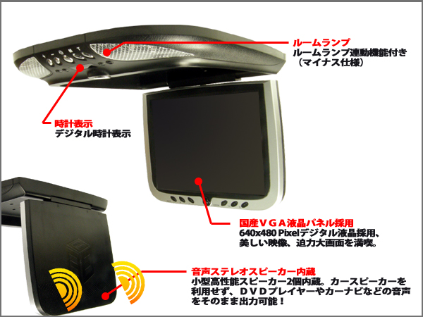 - 照明ランプ、時計機能付き、機能も付き、既存ルームランプを外してもモニターの付属ランプです点灯可能です。※2