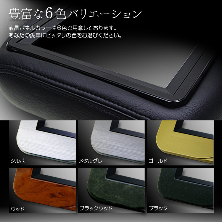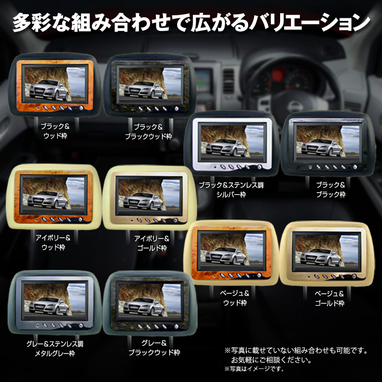 - 生地はシートカバーにぴったり合う4カラー。落ち着いた光沢の「レザー生地」、きめ細かな手触りの「モケット生地」を用いた2タイプをご用意。 各生地に「ブラック」、「グレー」、「アイボリー」、「ベージュ」の4色ラインナップをご用意!また生地と内装に合わせた6種類のフレームで愛車にぴったりのヘッドレストモニターをご用意します!
