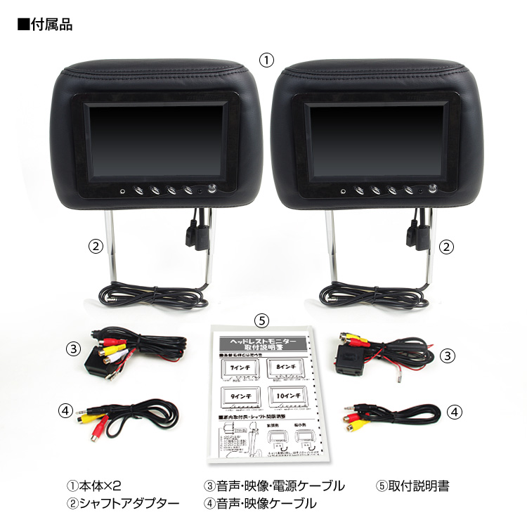 - 本体×2/シャフトアダプタ×2/音声・映像・電源ケーブル×2/音声・映像ケーブル×2/取付説明書