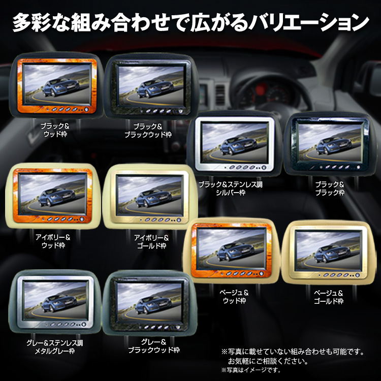 - 生地はシートカバーにぴったり合う4カラー。落ち着いた光沢の「レザー生地」、きめ細かな手触りの「モケット生地」を用いた2タイプをご用意。 各生地に「ブラック」、「グレー」、「アイボリー」、「ベージュ」の4色ラインナップをご用意!また生地と内装に合わせた6種類のフレームで愛車にぴったりのヘッドレストモニターをご用意します!