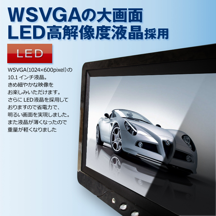 - 高解像度WSVGA/LED液晶を用いられ、高解像度、高輝度、広角表示、従来比約2倍のきめ細い画素数、緻密な映像を楽しめます。