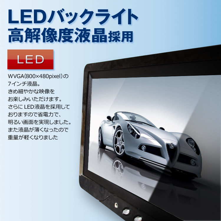 - 高解像度WVGA/LED液晶を用いられ、高解像度、高輝度、広角表示、従来比約2倍のきめ細い画素数、緻密な映像を楽しめます。