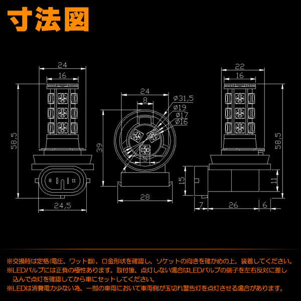 LEDバルブ球フォグ用(LB1-H8-18HP3)