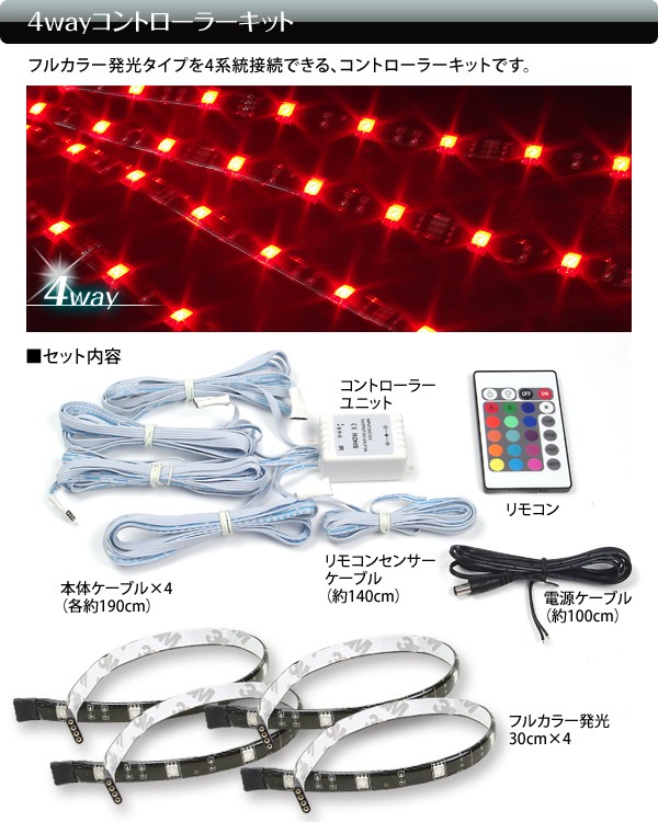 このセットで16色の色変更や4種類の発光パターンをリモコンでカンタンに操作できます!