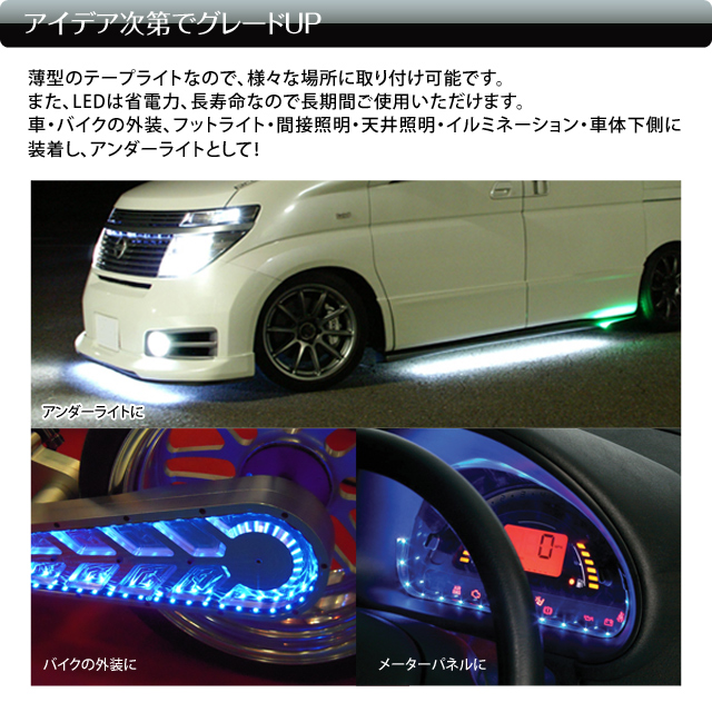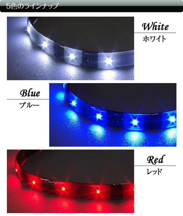 - レッド、ブルー、グリーン、ホワイト、オレンジの5色をご用意致しております。 お客様の車に合ったLEDをお選びください。