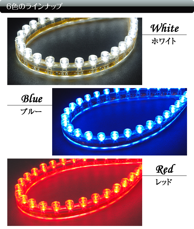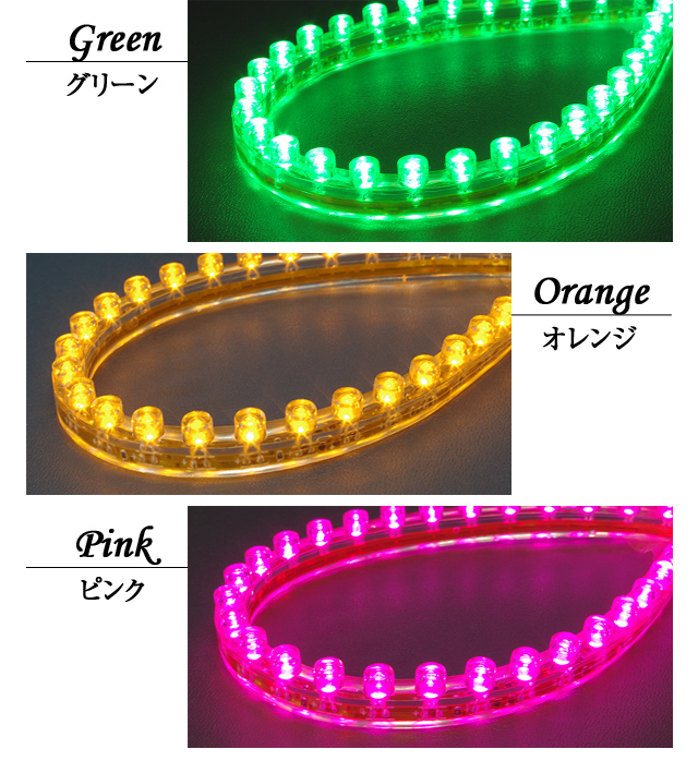 - レッド、ブルー、グリーン、ホワイト、オレンジ、ピンクの6色をご用意致しております。 お客様の車に合ったLEDをお選びください。