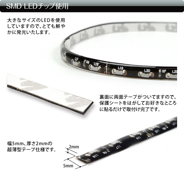 - 1本2役のスグレモノ登場!1本でそれぞれ単色発光も可能、両方発光させることもできます。組み合わせによって今までになかった色合いをかもし出すことも可能です。ヘッドライト周りなど細い場所のアクセントに最適です!