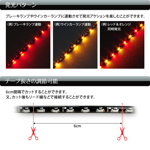 - 1本で2カラー点灯なのでブレーキランプなどに最適