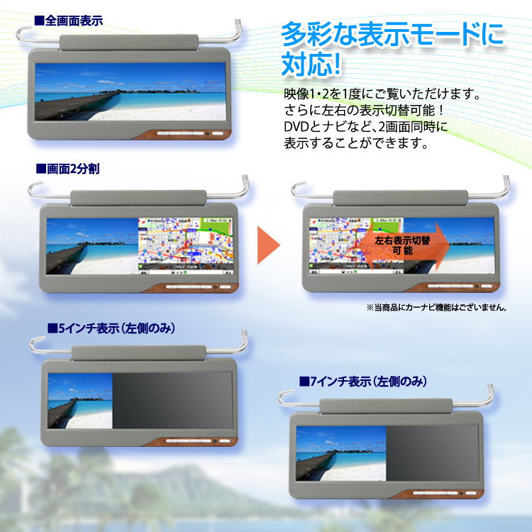 - 12.2インチの大迫力画面の他に、2分割表示機能も内蔵、更にボタン一つで左右の入替もOK