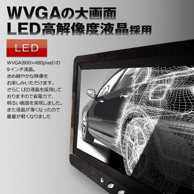 - 高解像度WVGA/LED液晶を用いられ、高解像度、高輝度、広角表示、従来比約2倍のきめ細い画素数、緻密な映像を楽しめます。