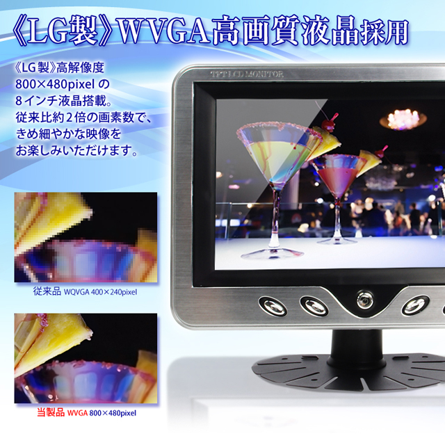 - LGエレクトロニクス製8インチWVGA液晶パネル採用