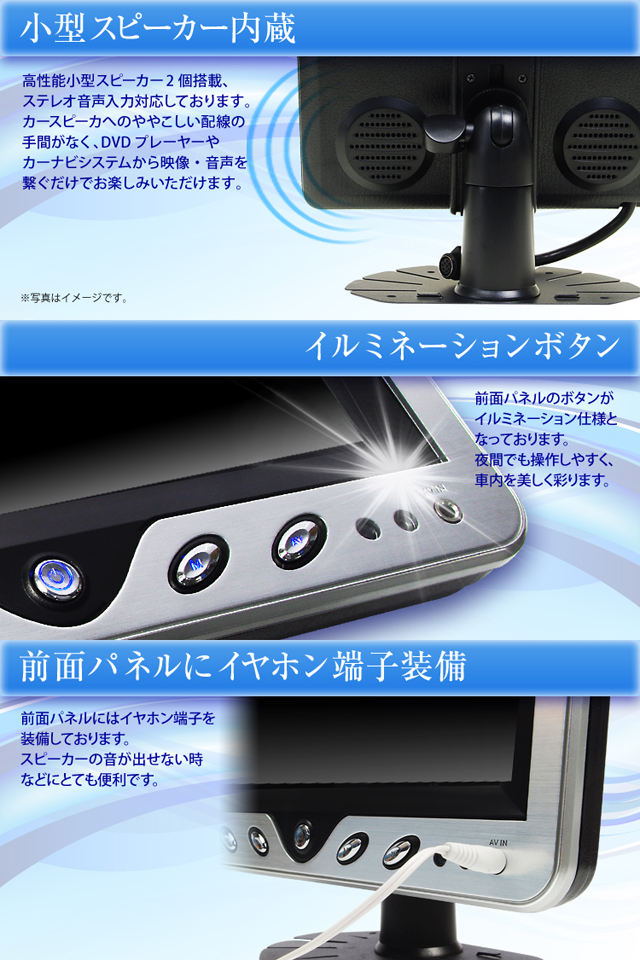 - 高性能小型スピーカー2個搭載、スピーカへのややこしい配線手間がなく、映像・音声視聴可能です。