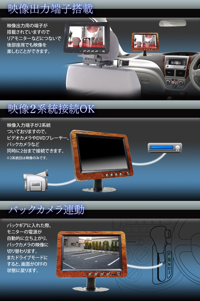 - 専用バックカメラ連動仕様、バックギア入れると自動的にバックカメラの映像に切り替わります。 (V2対応)