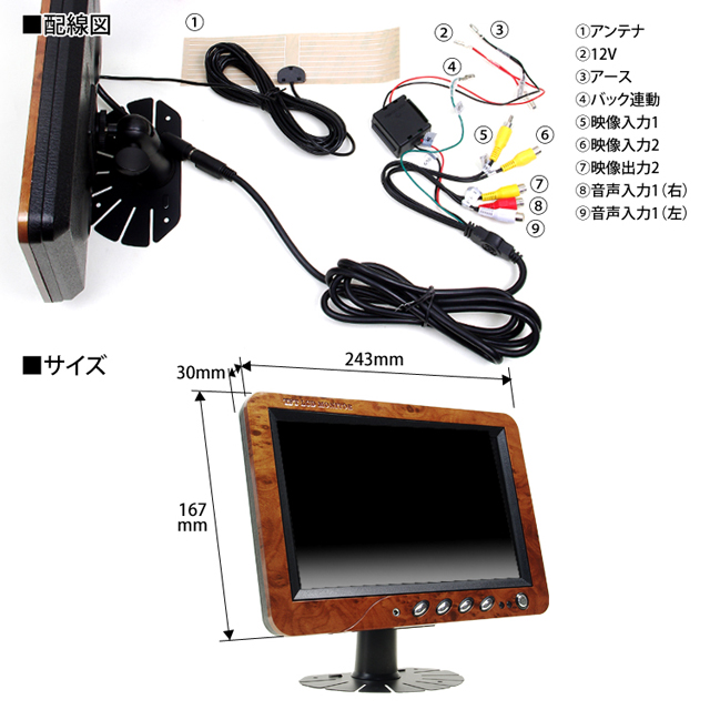 9インチワンセグ内蔵オンダッシュモニター(TKSE906)
